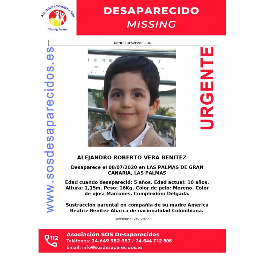 Sustracción Parental En Compañia De Su Madre America Beatriz Benítez Abarca De Nacionalidad Colombiana.