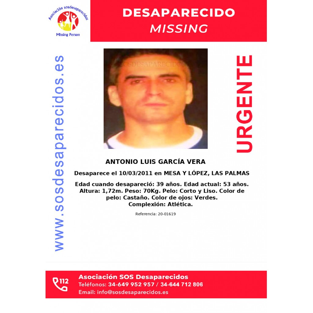 Desaparecido hace: 14 años, 9 meses, 30 días.