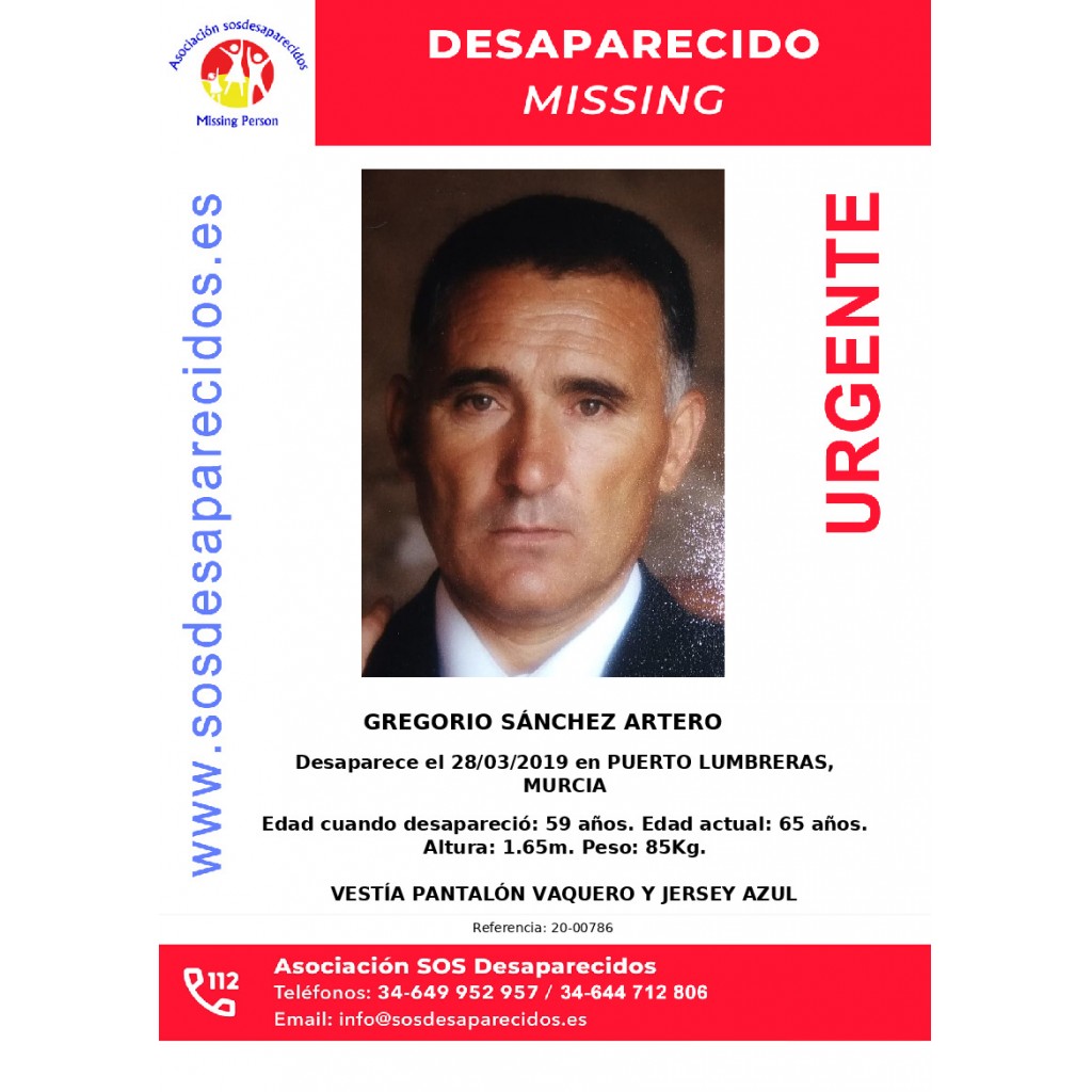 Desaparecido en: PUERTO LUMBRERAS, MURCIA