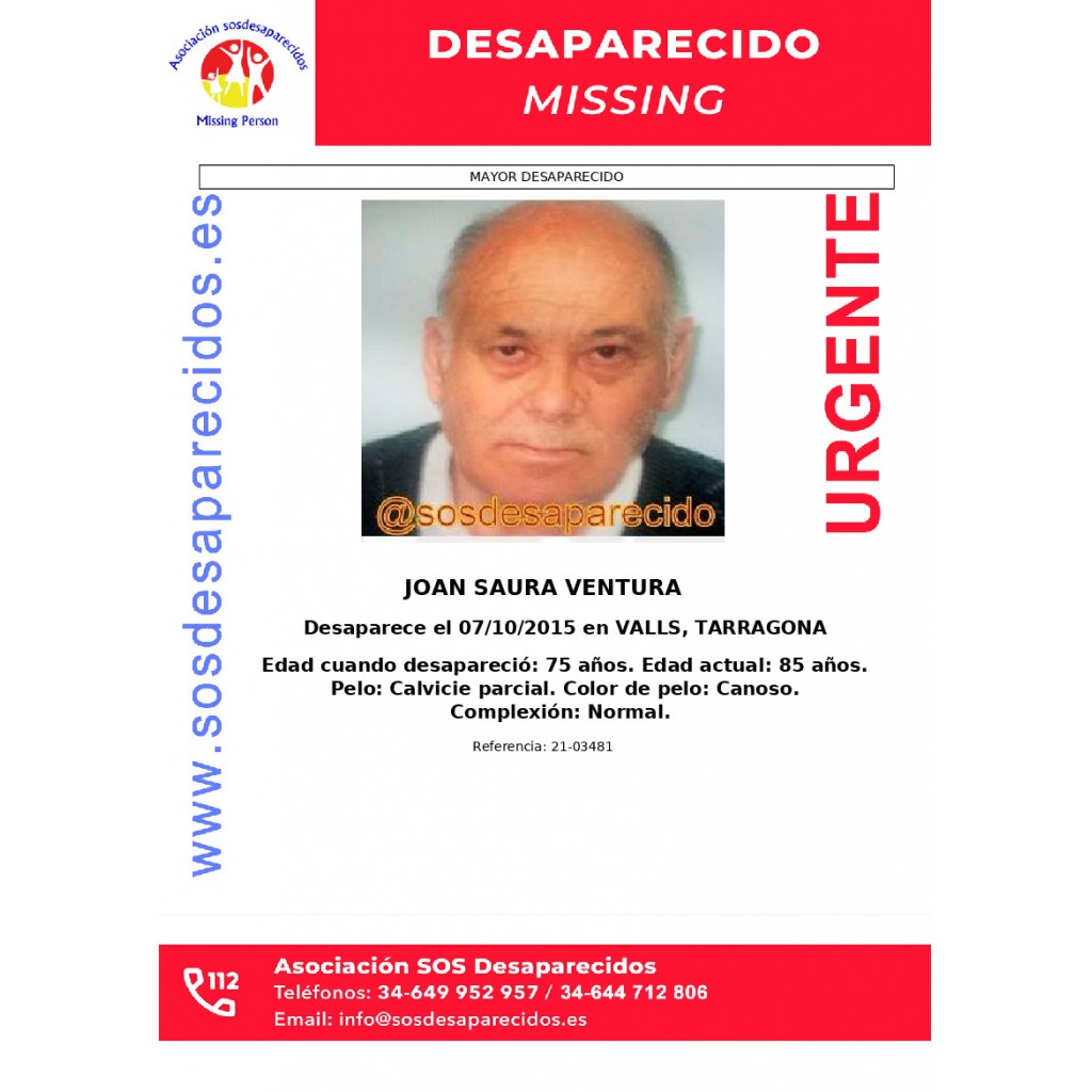 Desaparecido en: VALLS, TARRAGONA