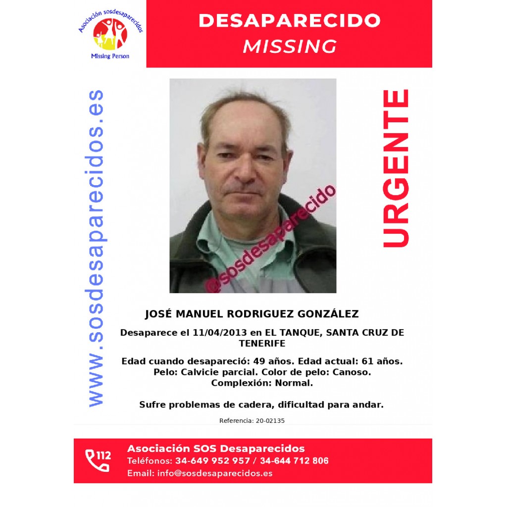 Desaparecido hace: 12 años, 6 meses, 27 días.